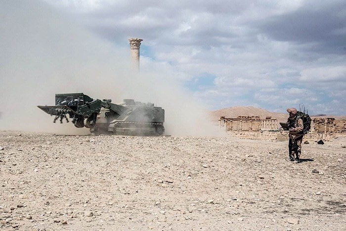 النوع الثاني من أنواع الروبوتات القتالية هو كاسحة الألغام "أوران-6"، التي استعانت بها وحدات الهندسة العسكرية الروسية في عمليات نزع الألغام والعبوات المتفجرة في مدن مثل حلب وتدمر.